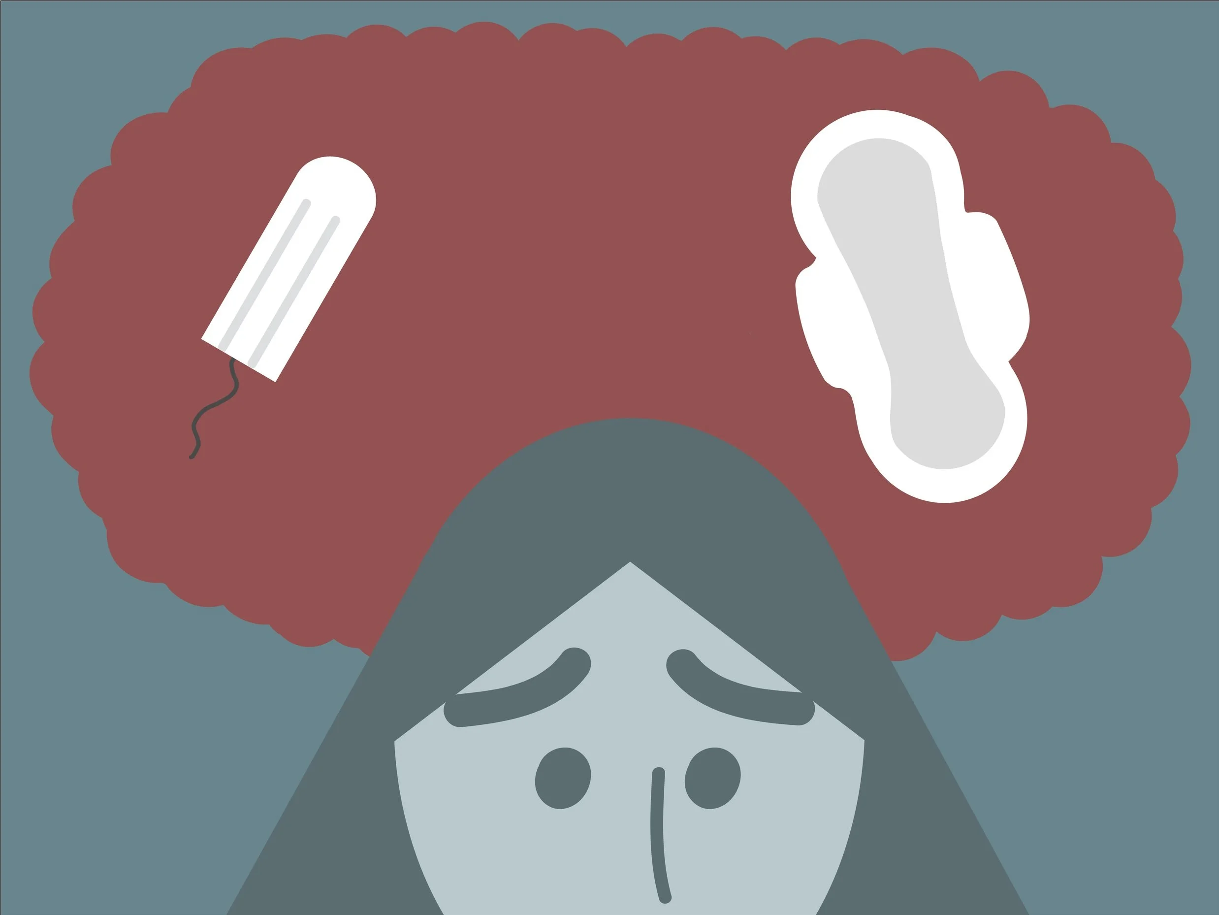 QU Chronicle - “Menstruation matters: Let’s talk periods” (2023) A graphic of a teen anxious about the topic of menstruation.